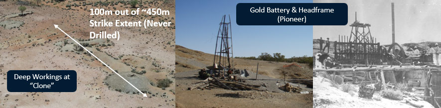 - Untested smaller reef systems identified with no drill testing, including Rosemount (> 200m strike) and Elizabeth (NW of Pioneer – two historic reefs ~200m of strike)
